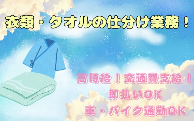 $車OK【即払】時1300+交500/開成駅/タオル・衣類の仕分け