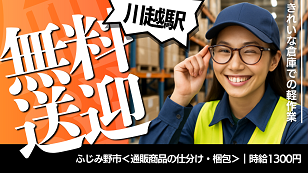 【川越駅送迎】ラクラク通勤!新しい倉庫で軽作業|時給1300円