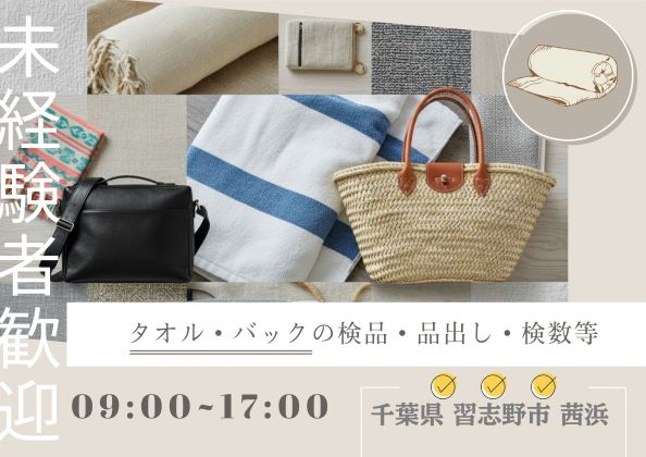 空調完備★送迎有♪時給1250円★タオル・バックの検品