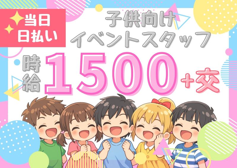 【NEW】日払◎車両◎時1500円+交!!子供向けイベントスタッフ♪