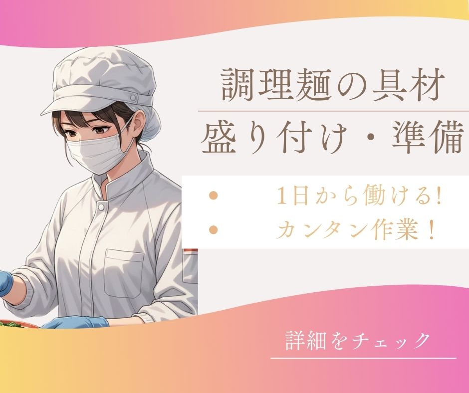 即日振込♪工場内で調理麺トッピングスタッフ募集!