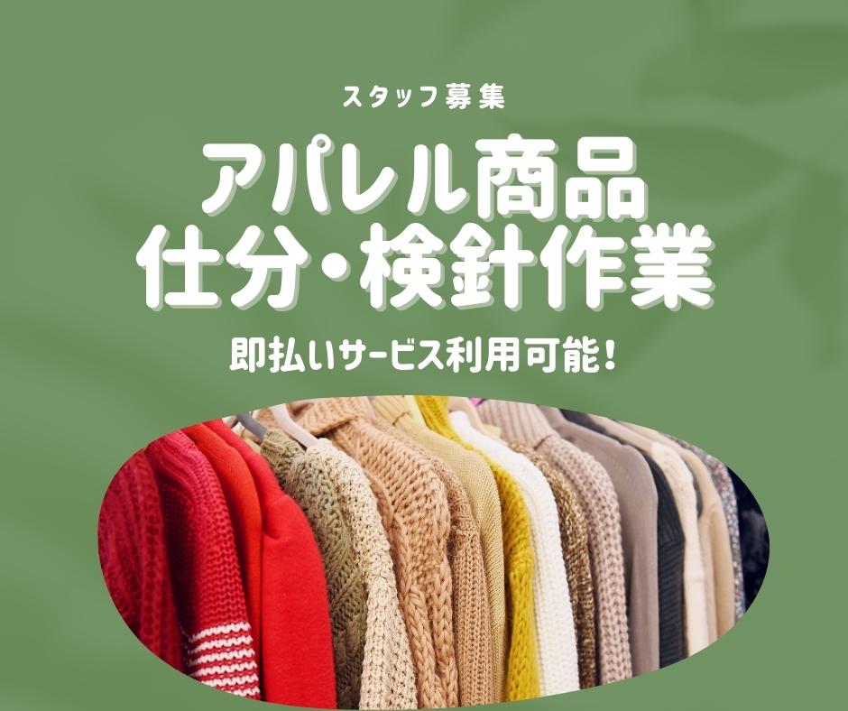 $【即払可能】時給1050円:アパレル商品の仕分・検品