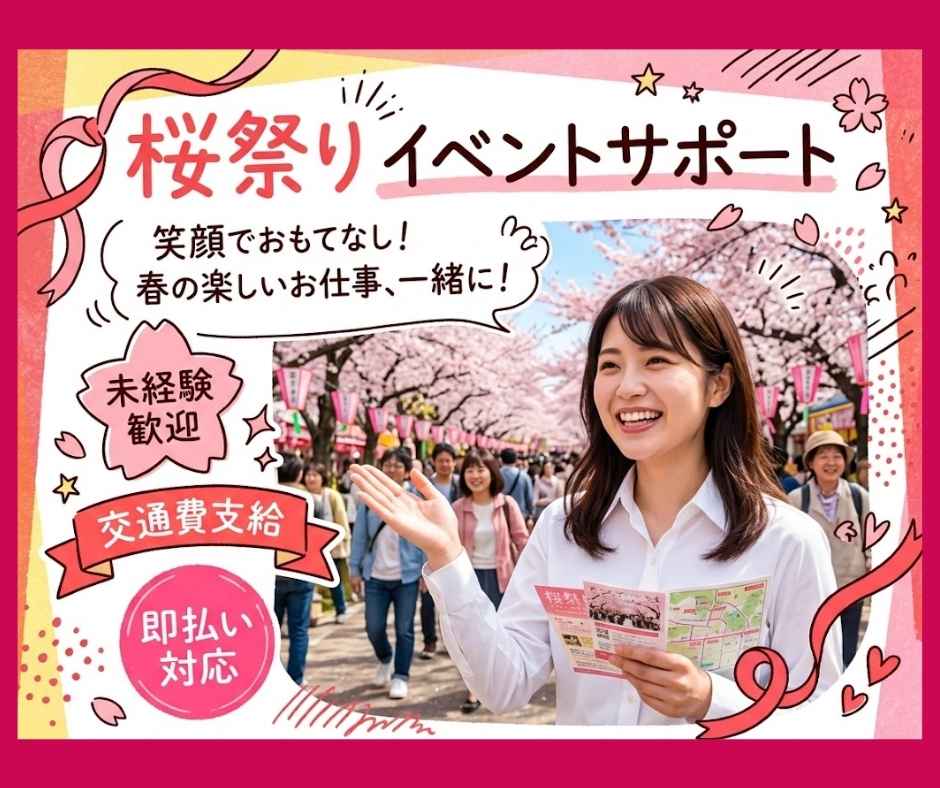 $【即払あり】交通費1000円/桜祭りイベントの補助スタッフ