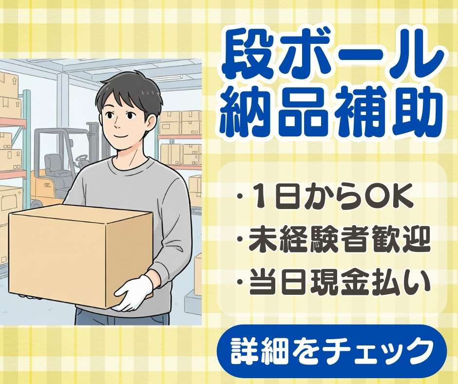 $【当日現金/日額4000円】ダンボールの納品補助作業