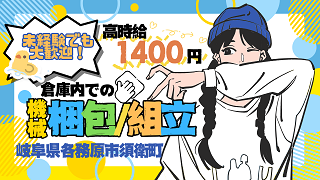 募SK【各務原市】機器の梱包組立作業♪時給1400円!!