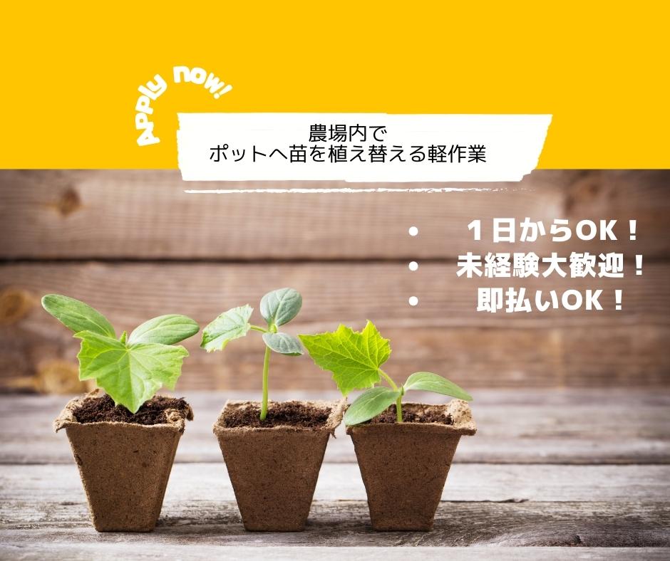 ★農業法人さんの農場内でポットへ苗を植え替える軽作業のお仕事です★
