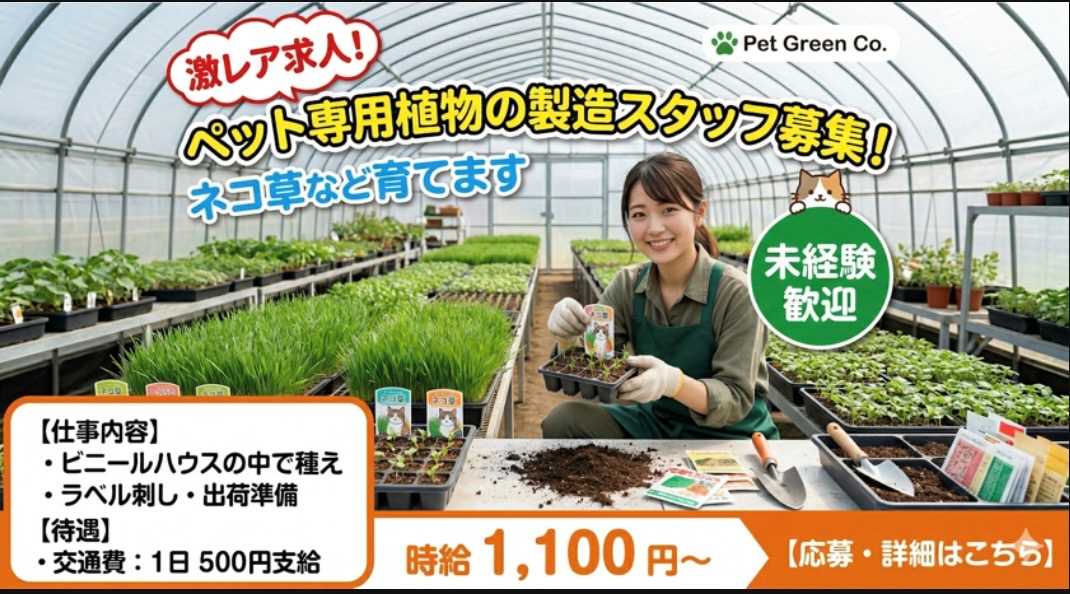 限定レア求人!ペット専用植物の製造のお手伝い♪