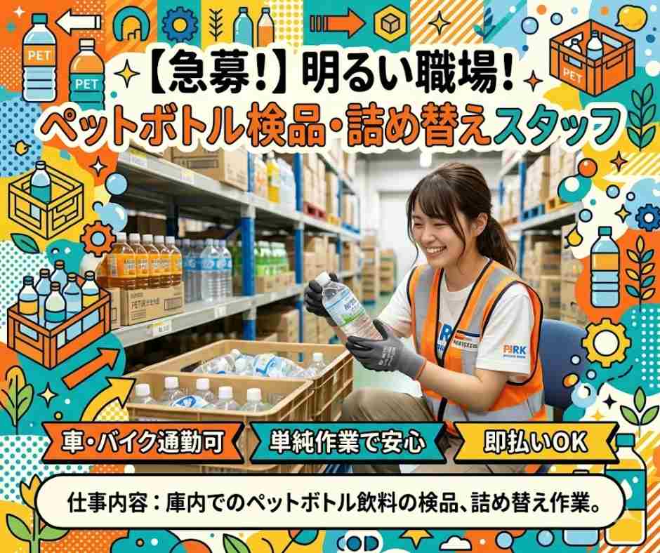 $即払可【うきは市】時給1200円+交1000円!検品詰替作業
