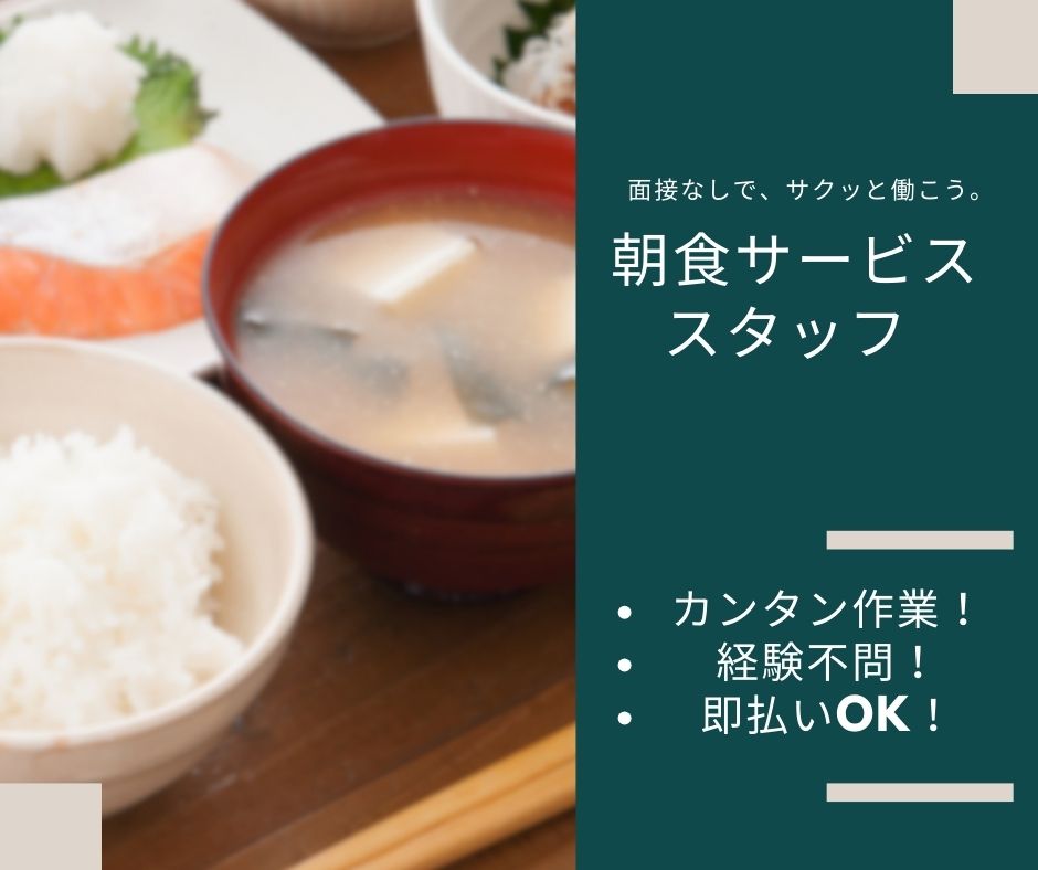 【即払OK】時1031+交500円/朝食サービススタッフ@西彼杵郡長与町