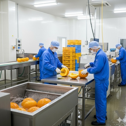 工場内でのかぼちゃの加工・箱詰め業務♪