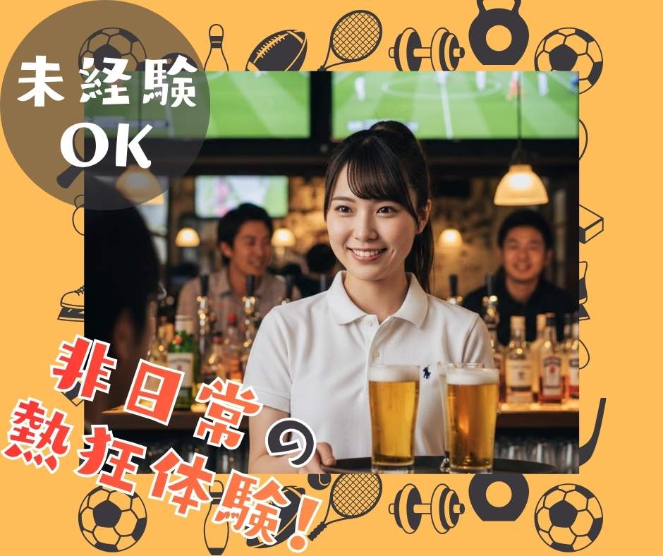 【作業内容】スポーツバーのホールスタッフ【詳細】・注文取り、ドリンクの配膳・下膳・テーブルの片づけ、セッティング・空いたグラスの洗浄 など