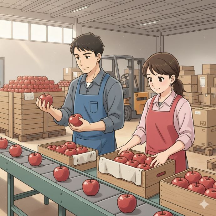 【当日現金】りんごの選別・箱詰め♪時給1050+交通費500