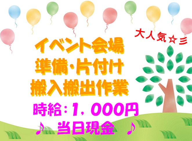 $【時給1,000!当日支給!!】会場の設営・撤去/倉庫内作業