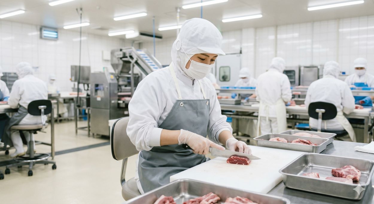 【時給1150円】食肉工場でのカット・仕分け・梱包業務★