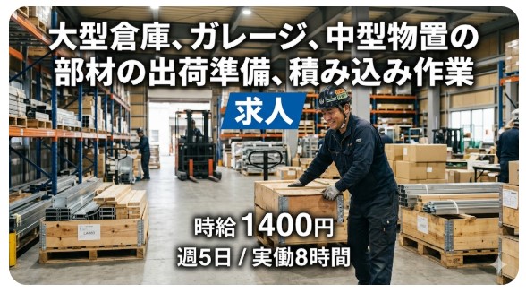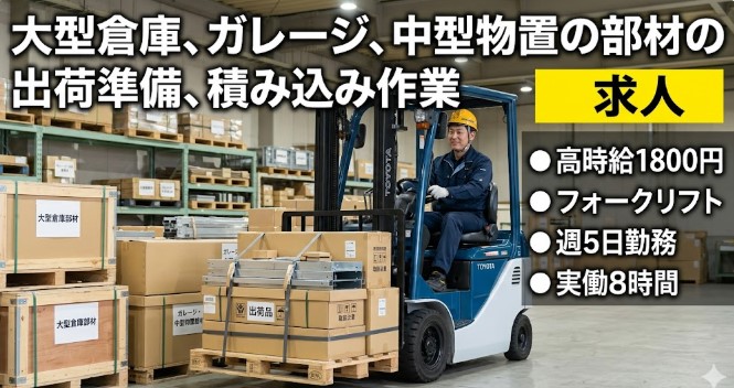 【新着】時給1800円♪フォークリフト◎物置の部材をピッキング