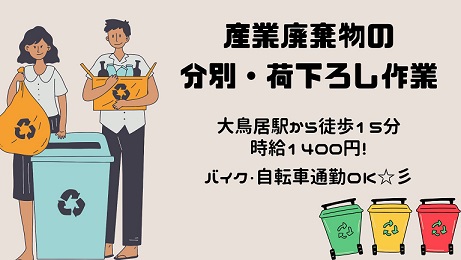 【即払可】時給1400円/大鳥居駅/産業廃棄物分別作業