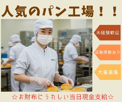 ◆夜勤◆当日現金:日給14000円◆パン・菓子の製造◆