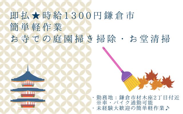 $バイクOK即払★時給1300円鎌倉市/カンタン♪庭園・お堂清掃業務