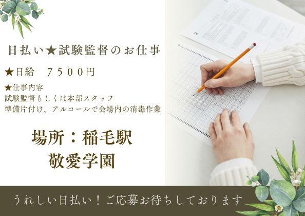 8000/日★日払い【稲毛駅:敬愛学園】試験監督