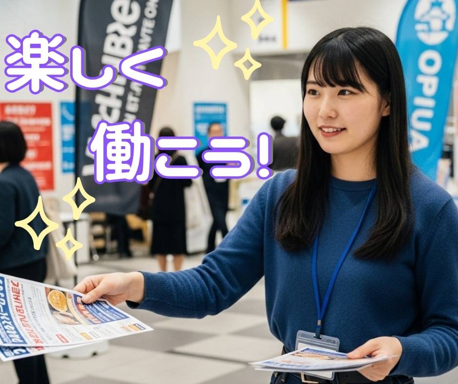 店舗入口及び開催場所付近にてイベントチラシの配布業務・梱包など椅子に座っての簡単な軽作業
