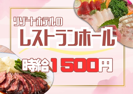 年末年始!1,600円+3000円!ホテルのレストランのホール補助♪♪