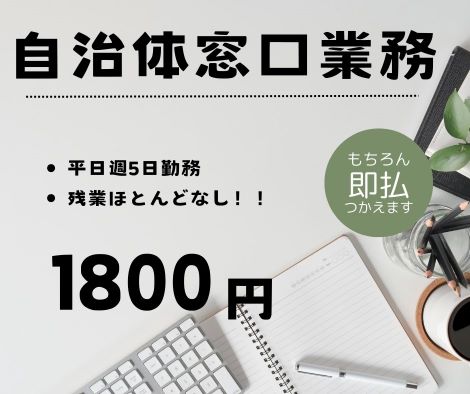◎平日週5日◎【高時給1800円】自治体の窓口業務!!