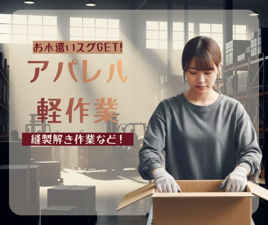 【お仕事内容】アパレル商品の様々な作業(工場2階にて)