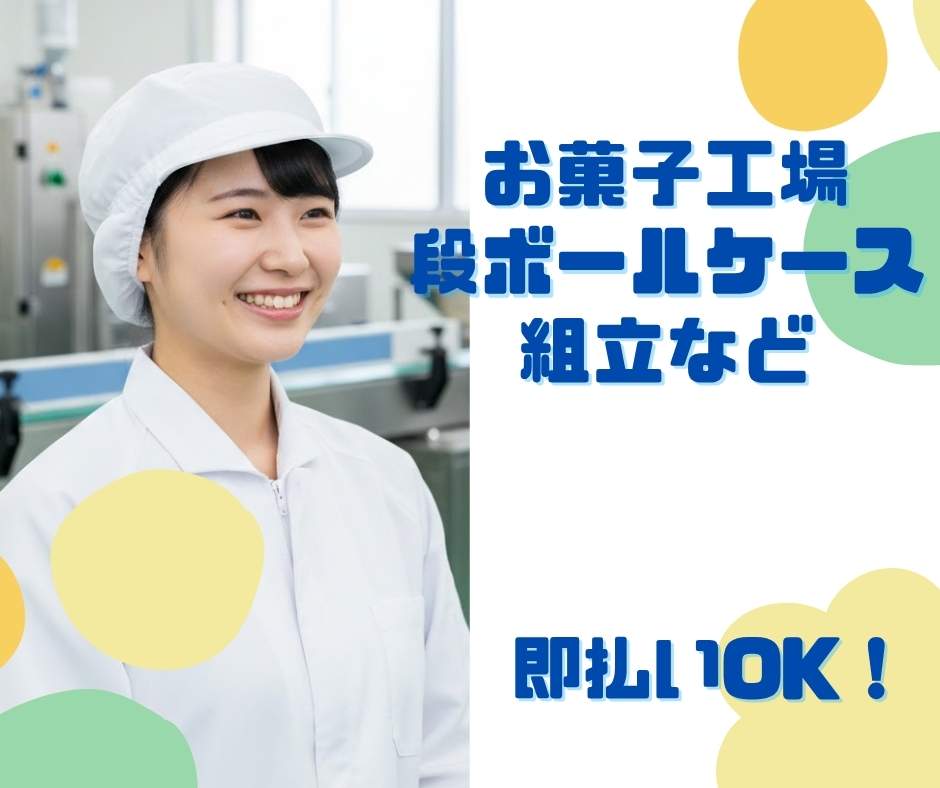 【作業内容】 お菓子工場での段ボールケースの組立などの簡単軽作業!
