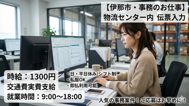 伝票入力のお仕事/伊那市西春近