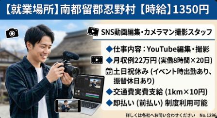 忍野村【月22万】SNS動画編集&カメラマン