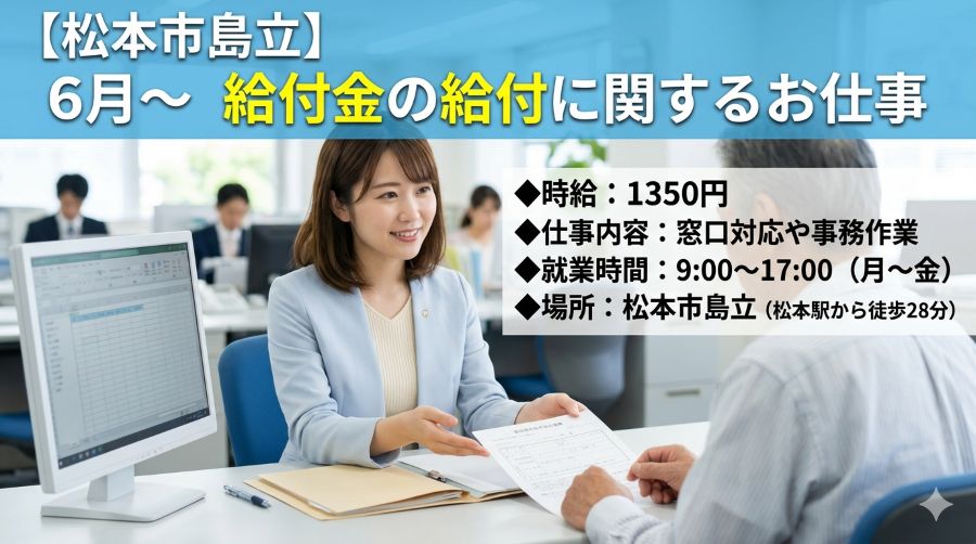 長野市:時給1350円6月~給付金に関する窓口・事務