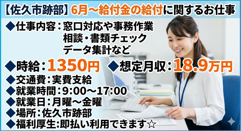 佐久市:時給1350円6月~給付金に関する窓口・事務