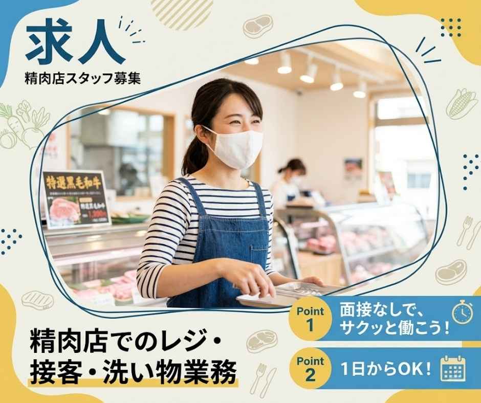 精肉店でのレジや接客のお仕事です!