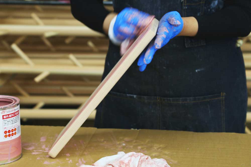 組立前のパーツに布を使って塗料を塗ってもらうだけの簡単なお仕事!