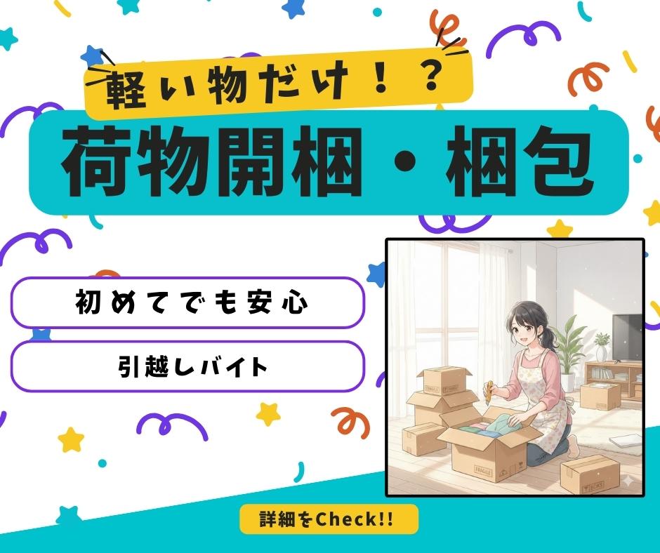 即払OK!時給1180円!四条畷市/引越の梱包開梱だけ