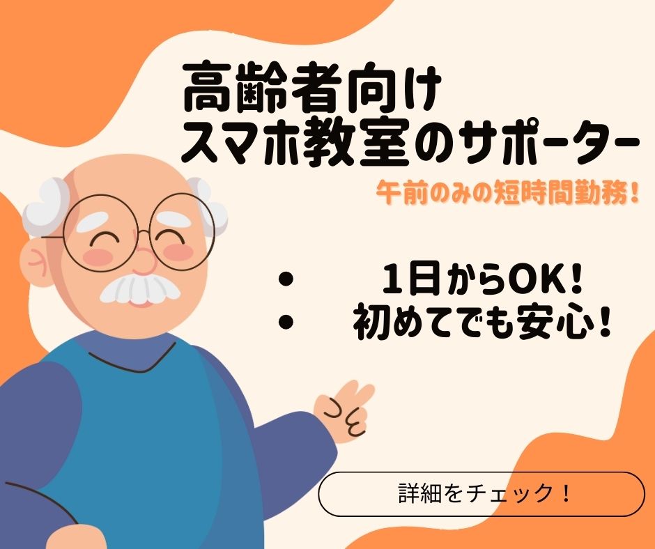 高齢者向けスマホ教室のサポーターをしていただきます。