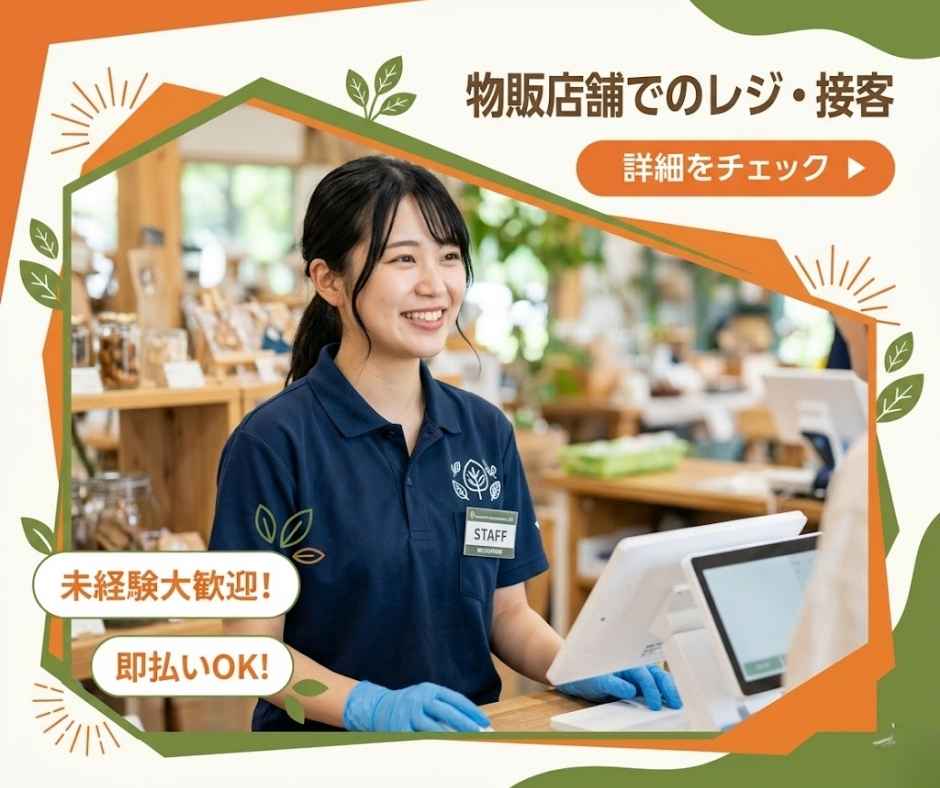 即払可◇交通費1060円◇物販店舗でのレジ・接客