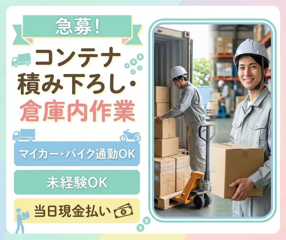 $日払/時給¥1150【朝日新町】コンテナからの積み下ろし作業