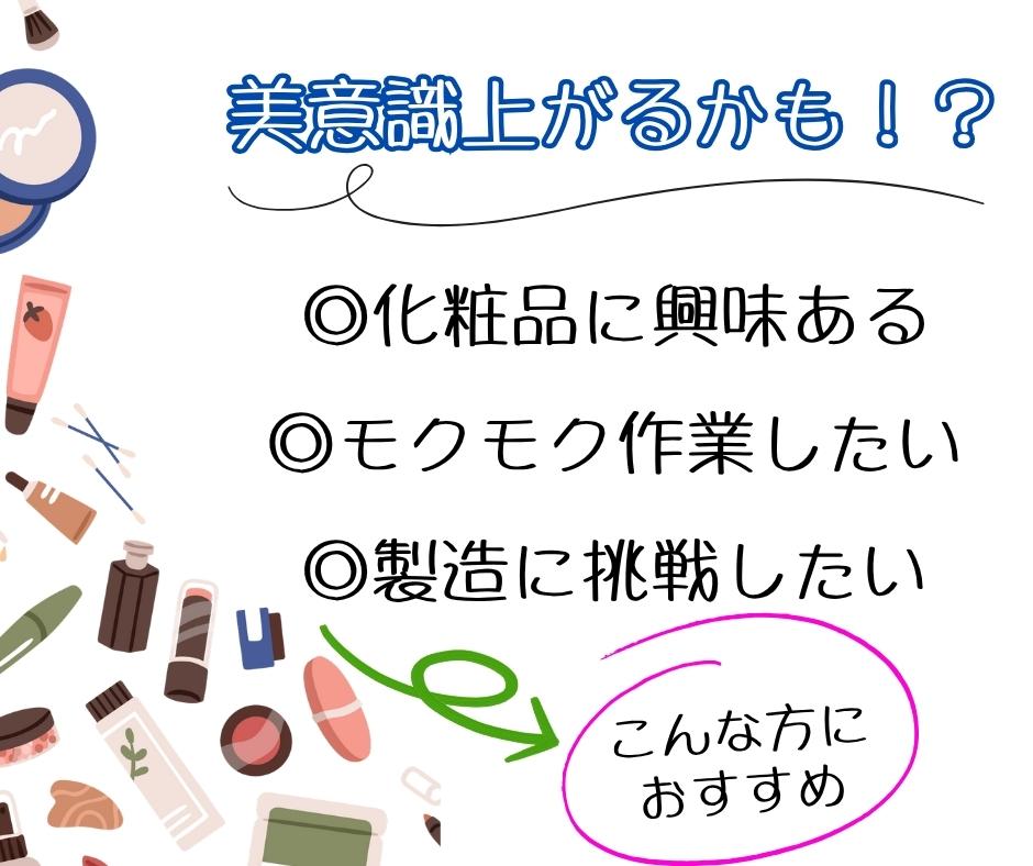 化粧品などに囲まれて働こう!製造サポートのお仕事