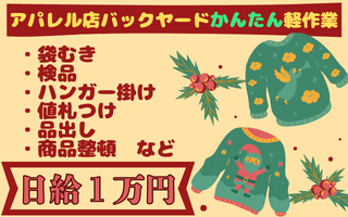 衣類用品店でのかんたん作業(検品、梱包、商品陳列)