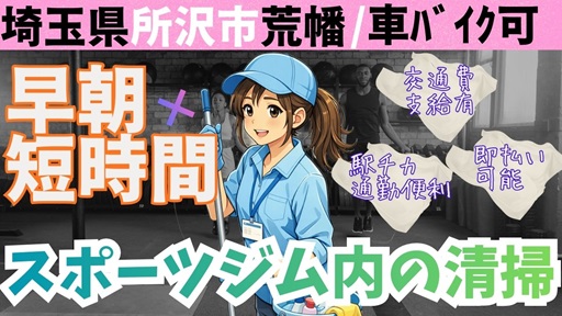 募SK【ジム清掃】時給1226円+交通費|車バイク可|短時間
