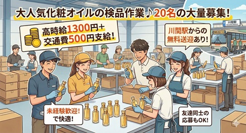 ◆無料送迎有♪◆時給1,300+交通費付//韓国コスメの検品