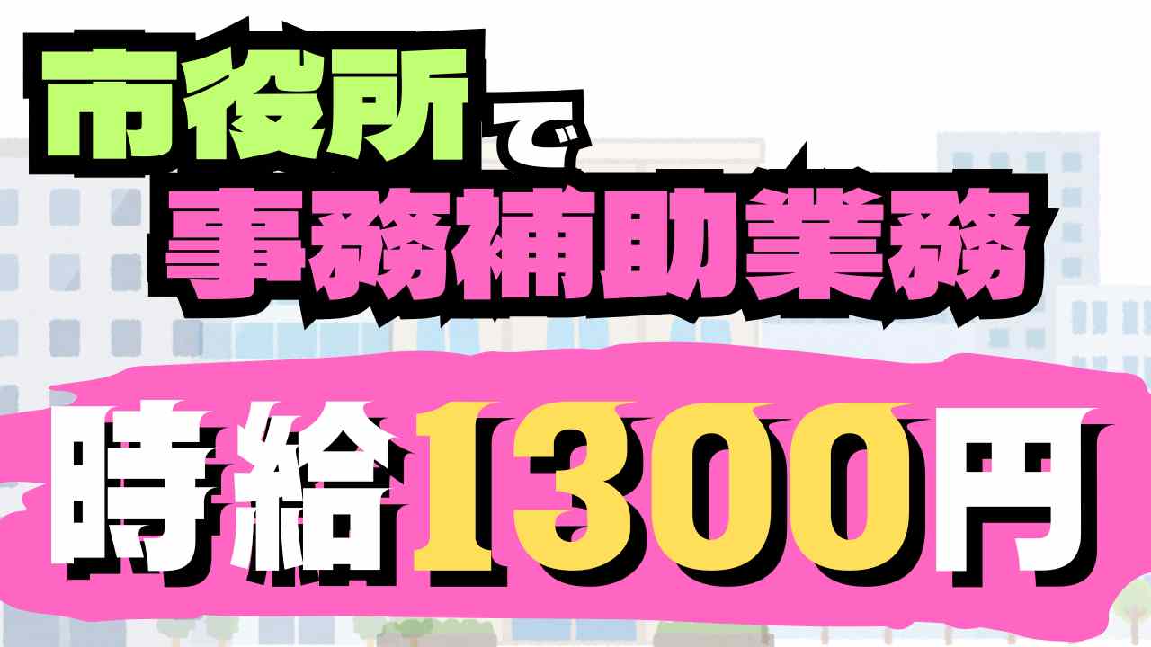 【大募集!!】時給1300円!!◎市役所での簡単事務作業