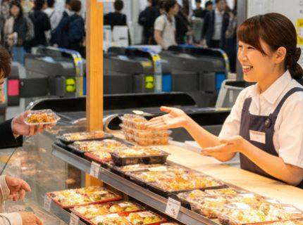 !(^^)! < 駅中にある惣菜販売店でお手伝いするだけ!!