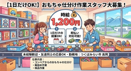 $即払い可!人気のカンタン軽作業♪おもちゃの仕分け