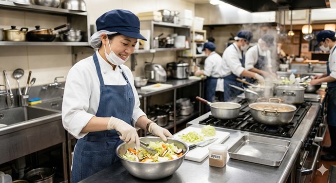 →主にお料理の調理等を行なって頂きます。