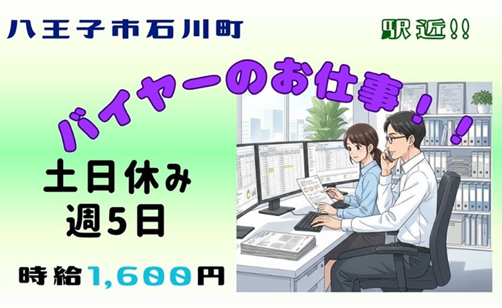 北八王子駅近・時給1600円!資材購買や発注などの仕事♪