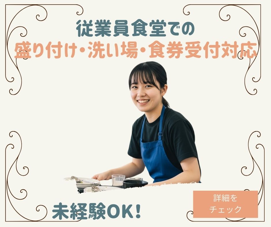 .$ 初めてでも大歓迎!社員食堂の洗い場・盛り付けなど