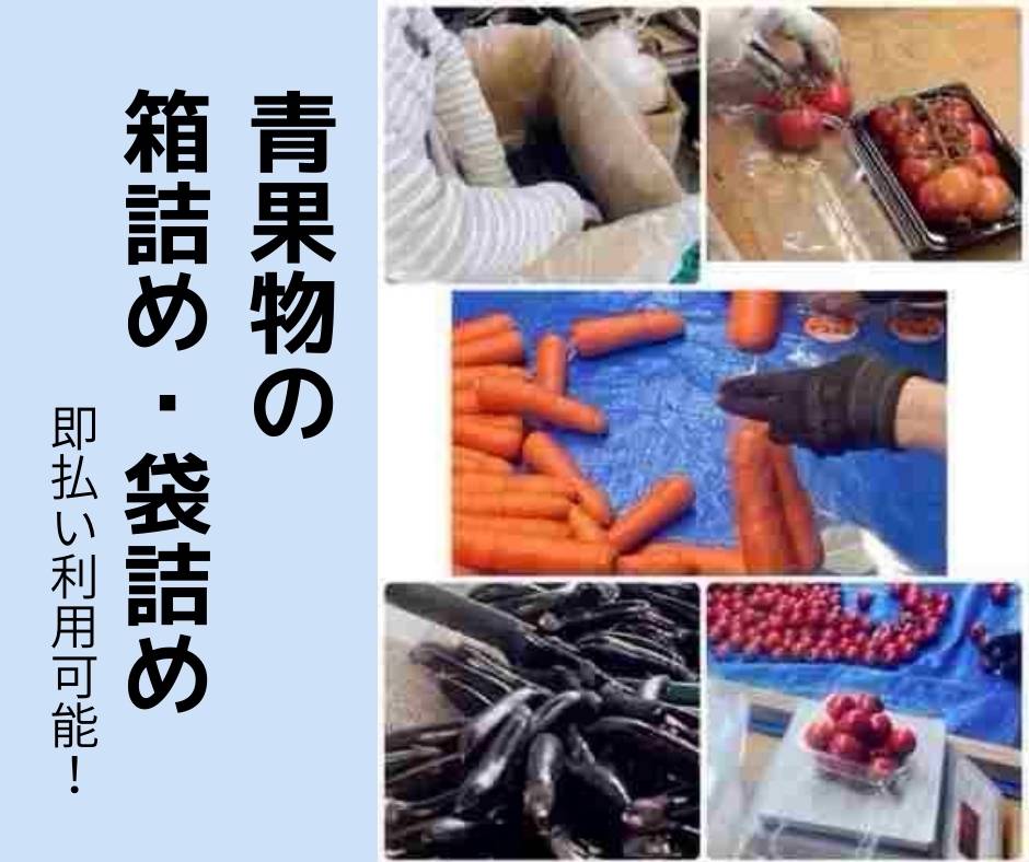 トマトのパック詰め・にんじんの袋詰め・その他青果物の箱詰めのお仕事がメインです♪