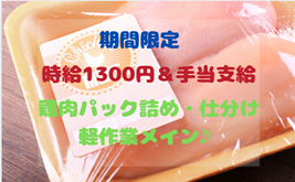 $【時1300円&手当1000円】鶏肉のパック詰めのお仕事♪